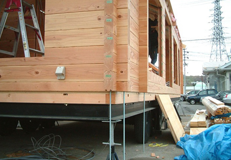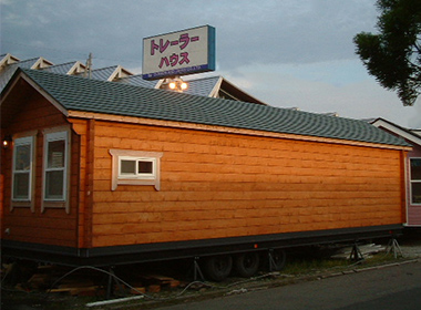トレーラーハウスとしては異例のモデルで、北米や北欧からのログを活用した自然派向けの本格的な作りです。総ログの重厚感と寒冷地対策をしっかり施しました。